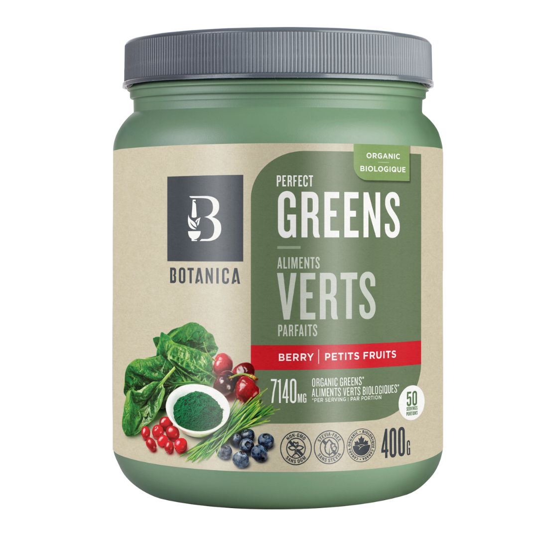 Botanica Perfect Greens is a clean, organic blend of chlorella, spirulina, barley and wheat grasses plus leafy greens to help top up and ensure that you’re getting your greens. Crafted with 100% organically grown ingredients including Canadian Prairies greens. So good we didn’t need to add any sweeteners, not even stevia.