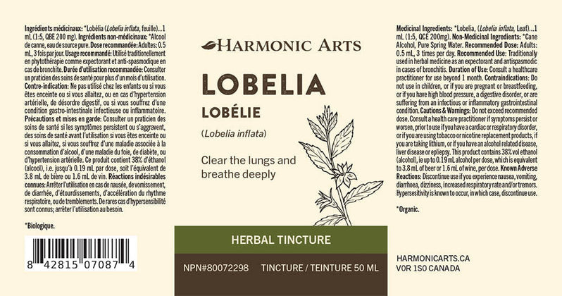 Our Lobelia Tincture is made with organic cane alcohol, distilled water and Lobelia (Lobelia inflata).