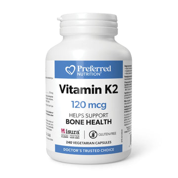 Support your wellness routine with Preferred Nutrition Vitamin K2 (MK-7) — a premium supplement formulated to help maintain healthy bones and overall calcium balance. Each vegetarian capsule provides 120 mcg of vitamin K2 as menaquinone-7 (MK-7), a highly bioavailable form sourced from fermented natto beans.