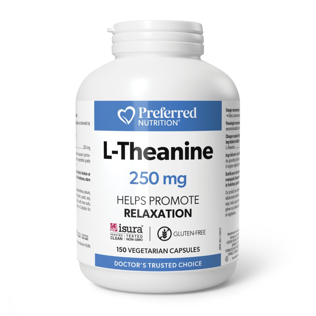 Preferred Nutrition L-Theanine provides 250 mg of L-theanine in a convenient one-per-day vegetarian capsule. This non-GMO supplement is suitable for vegetarians and vegans.