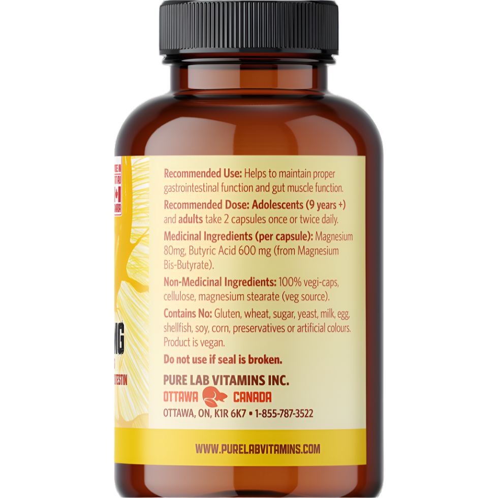 A diet low in complex carbohydrates and fibre can reduce the body’s ability to produce butyrate naturally, which may affect digestion and regularity. That’s why Pure Lab’s Magnesium Butyrate is formulated to combine two key ingredients—magnesium and butyrate—to help maintain normal digestive function and support healthy bowel movements.