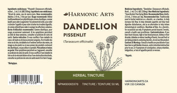 - Our Dandelion Root tincture is made with organic cane alcohol, distilled water and Dandelion Root (Taraxacum officinalis).