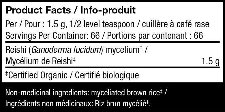 Host Defense Reishi Powder uses activated, optimally dried, certified organic mushroom mycelium, with a full spectrum of constituents, including polysaccharides and an array of extracellular constituents. Reishi, respectfully called the “Mushroom of Immortality,” is well known as a tonic for supporting general wellness and vitality, especially in times of stress. This bioavailable powder has a mild flavour profile and can be mixed with your favorite beverage, smoothie, or food recipe.