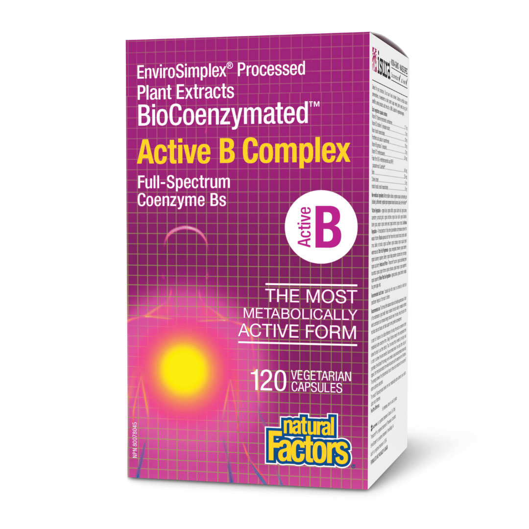 Natural Factors Active B Complex with full-spectrum coenzyme B vitamins is a one-per-day formula featuring highly bioavailable B vitamins alongside Farm Fresh Factors, a bioenergetic blend of phytonutrients, for active support of energy metabolism. Upgrade your standard B complex supplement to this non-GMO, vegan-friendly, advanced B complex and feel the difference!