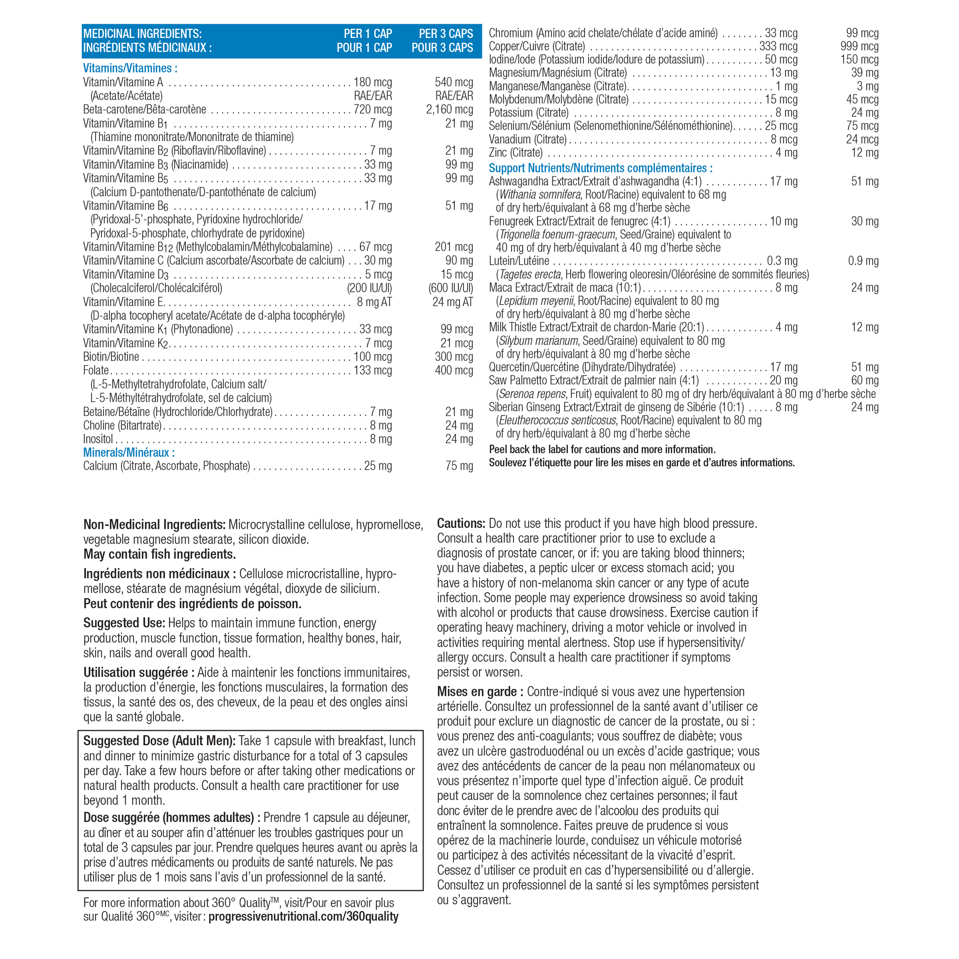 Progressive 100% Complete MultiVitamin for Active Men is designed for men on the go. Whether you exercise regularly, work long hours, raise a family or any combination of the above, your body needs the support of an Active MultiVitamin formula. This improved formula features a complex of supporting nutrients designed to address Men’s health needs. These include Quercetin, Saw Palmetto, Fenugreek, Maca, Ashwagandha, and Siberian Ginseng.